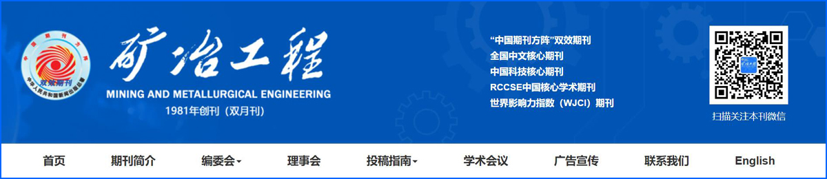 《矿冶工程》致力于积极宣传报道矿冶行业新理论、新技术、新工艺、新设备,努力推动行业技术进步。欢迎各位作者及读者朋友进入《矿冶工程》全新官网,关注我刊出版动向、交流学术思想、参与期刊投稿审稿,共同助力《矿冶工程》高质量发展及一流科技期刊建设!