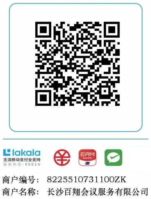 也可通过微信扫码支付,请注意核对收款账号名称:长沙百翔会议服务有限公司