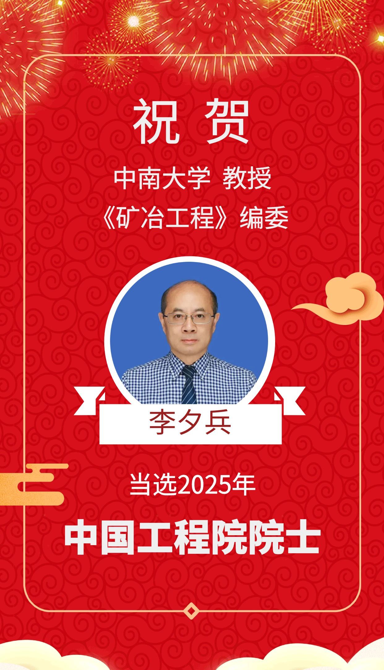 热烈祝贺我刊编委李夕兵教授当选中国工程院院士